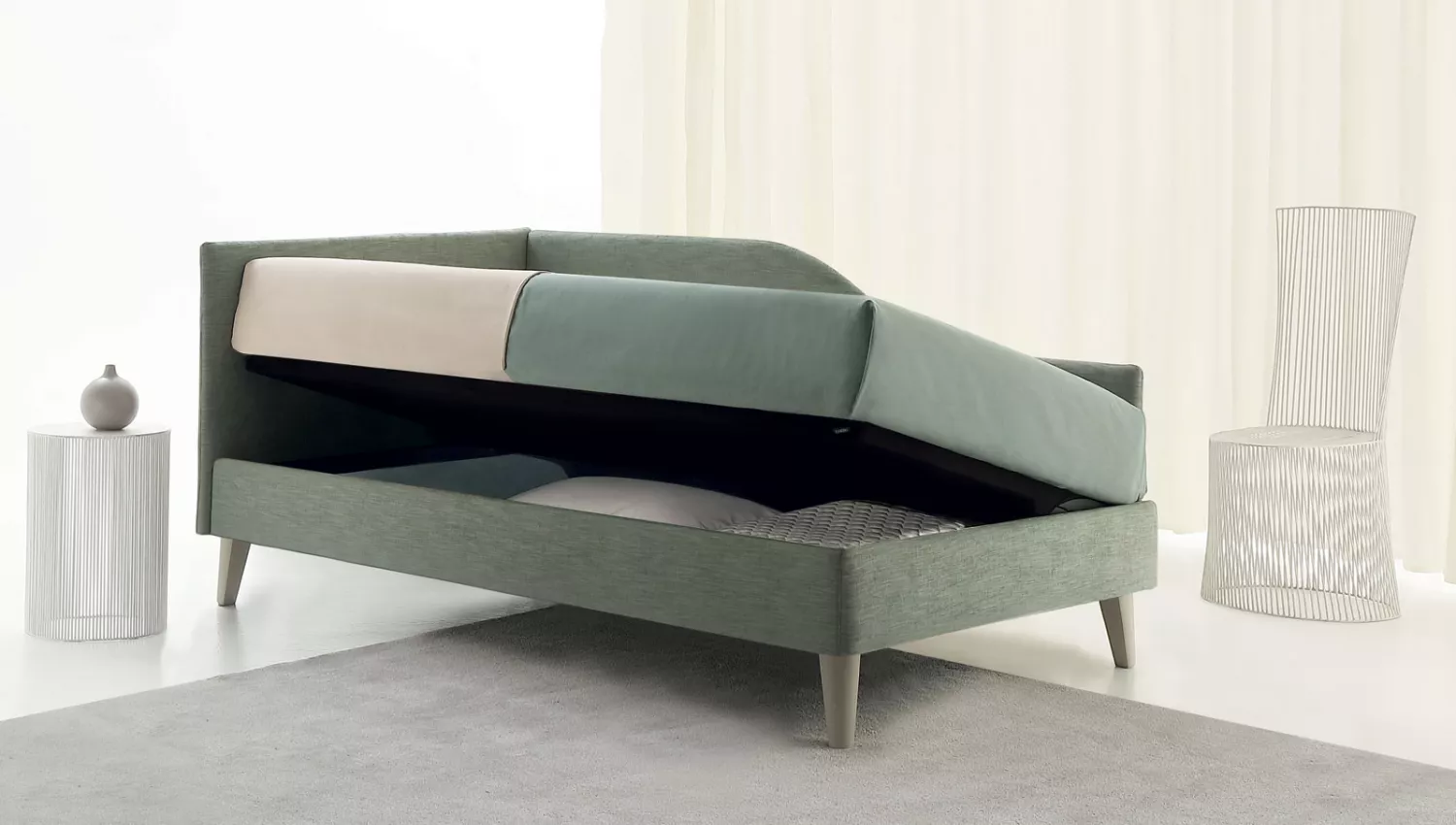 Ai letti singoli Golf possono essere abbinati piedi di varia altezza, per un’agevole pulizia del pavimento anche con robot aspirapolvere sotto la base del letto-contenitore.