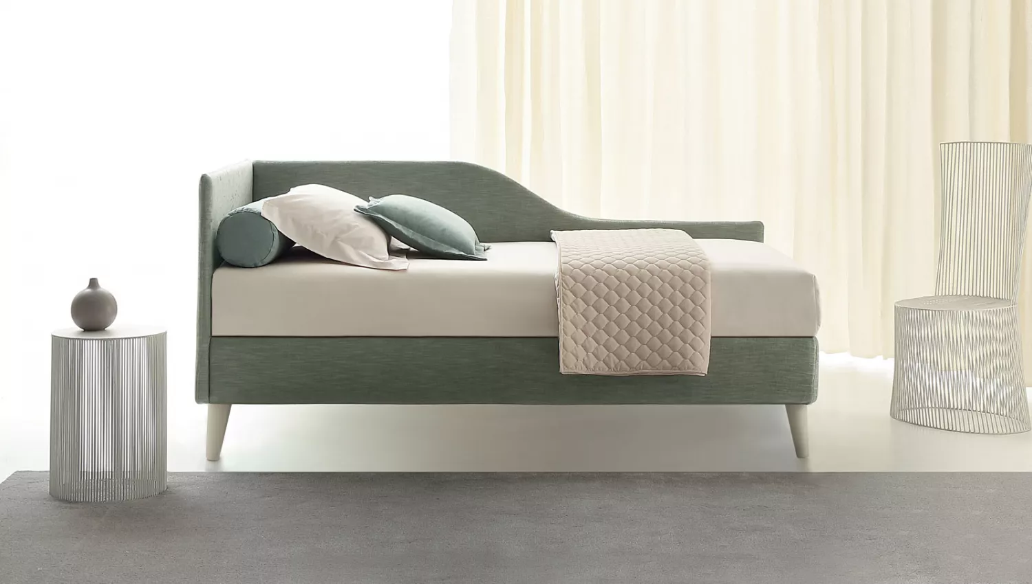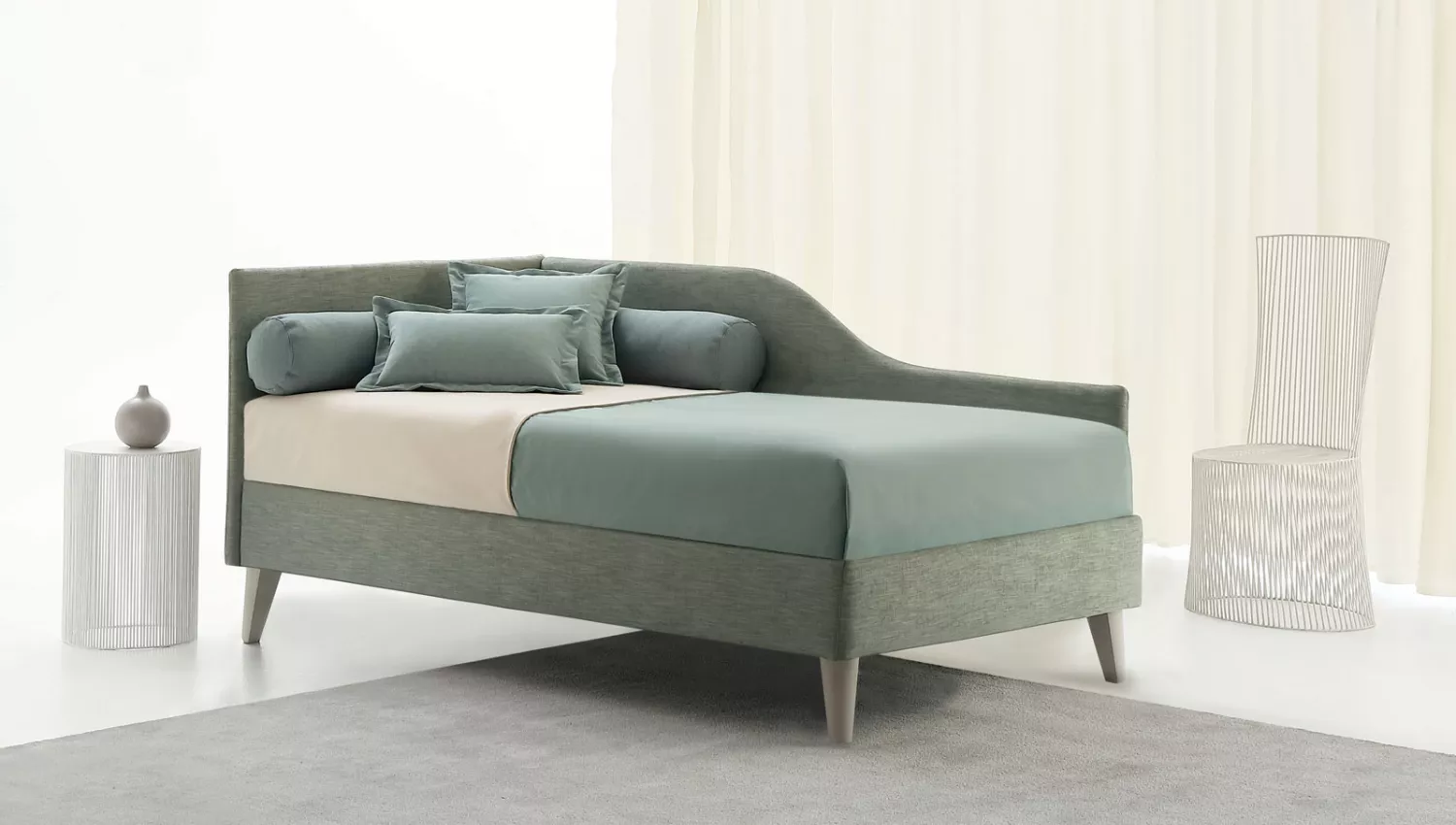 Letto tessile singolo completamente sfoderabile. I letti singoli a programma offrono la possibilità di personalizzare e scegliere numerose configurazioni per risolvere ogni esigenza abitativa. I letti Golf, ognuno unico, ognuno diverso.
